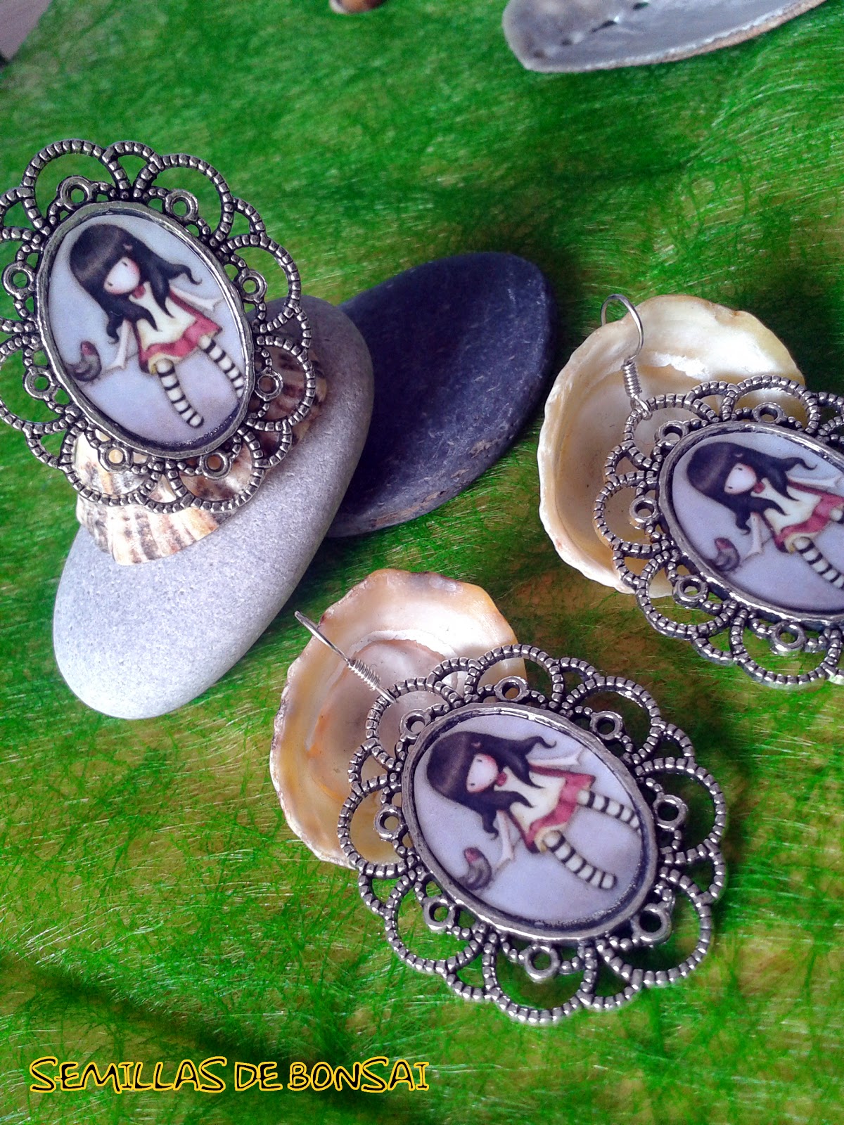 Ahora que ya está empezando el buen tiempo y la bisutería luce mejor he preparado unos pendientes, anillos, colgantes y horquillas con la base de camafeos. Los complementos de estilo vintage están muy de moda y se combinan con casi todo tipo de ropa. Yo, en esta ocasión, he elegido los diseños de Gorjuss Santoro.